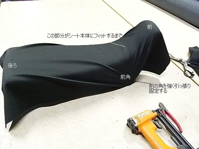 張り替えるシート地を多少余分にカットして最初に、前と後ろの