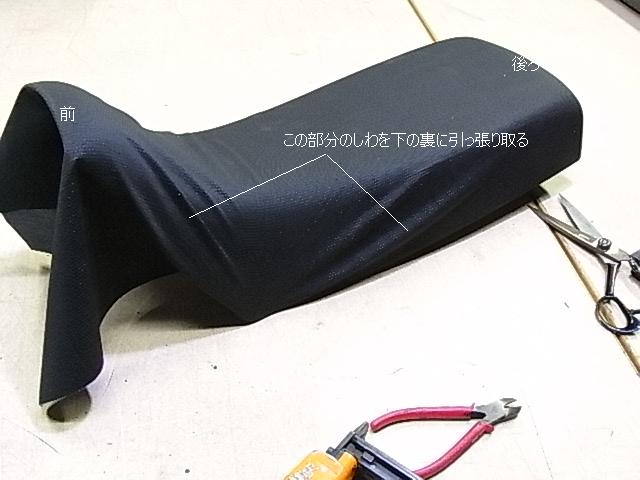 前側の浮いてる部分をシートにフィットするまで引っ張りシート