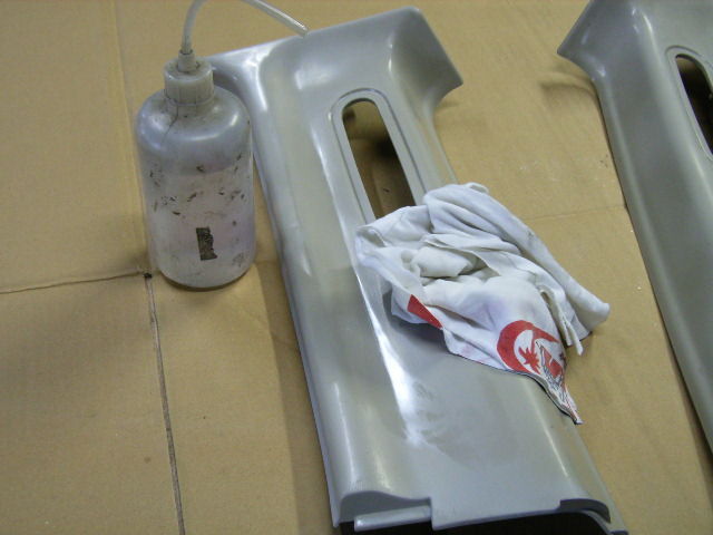 足付け作業が終了したら、全体の脱脂(表面の油分などを取り除く作業)を行います。