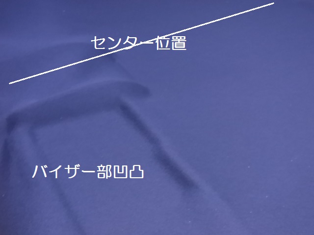 取っ手部、バイザー部をテンションかけずに張って行くと画像のように必ず布地シワが出来ます。