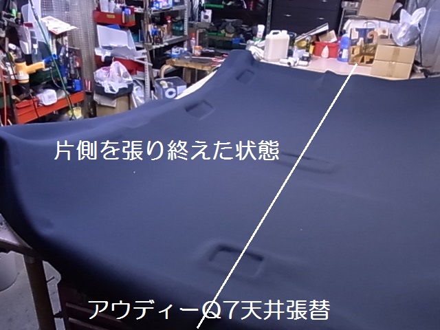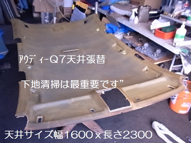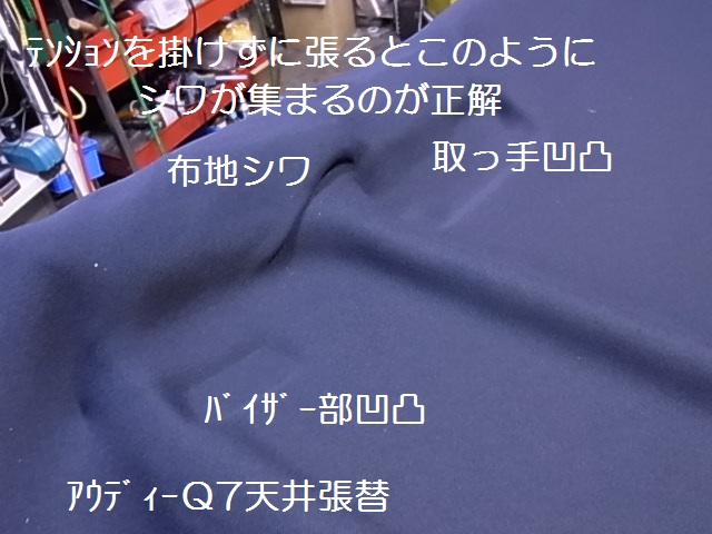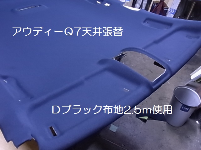 今回使用した布地はDブラックを2.5m使用しました、天井幅が後ろ側で160センチほど有りますので155センチの布地を若干伸ばしながら張って行くとジャストサイズです。