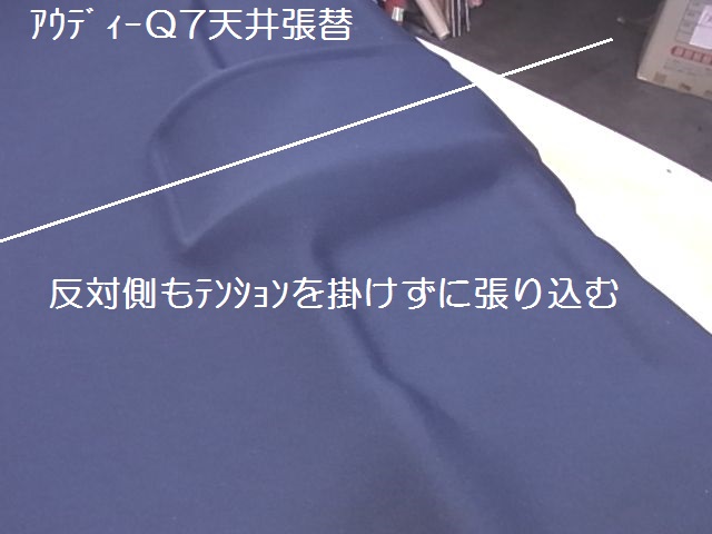 当社では中心部分から左右に分けて張り込んで行きます、この時重要なのが凹凸部分周りを先に張って凹部分を押し付けながら張って行く事は厳禁です