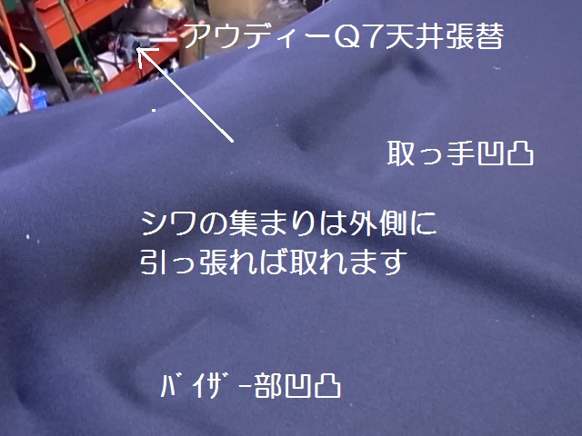 凹凸に沿って布地を伸ばさず張って行くことが重要です。