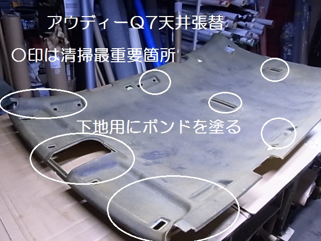 ○印部分の凹凸部分は特に念入りに清掃する事が重要です、アセトンで清掃後はアセトンを完全に揮発させないと張替後、剥がれが生じます。