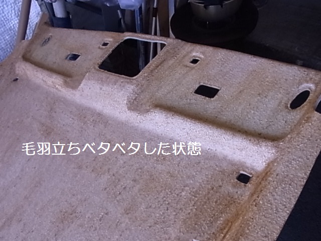 毛羽立ちに付け加え、劣化したベタベタウレタンかすが残っている