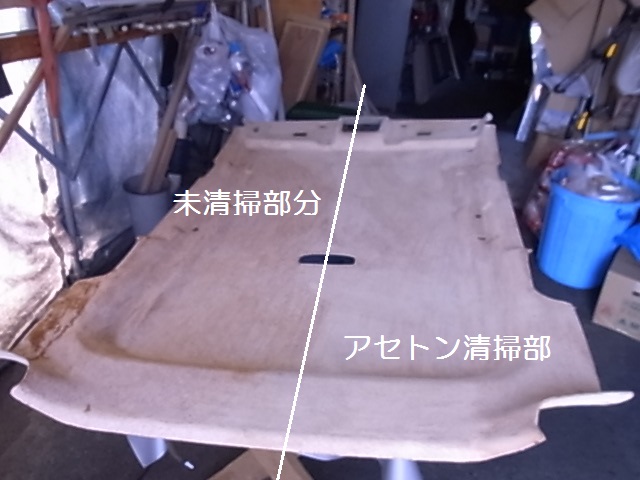 アセトンで清掃した部分と未清掃部分の差が確認出来ます