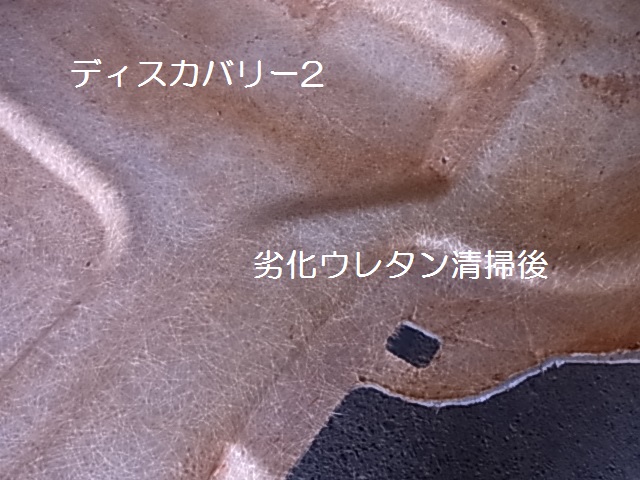 ウレタンをワイヤーブラシ、デッキブラシ、など硬めのブラシでウレタンを軽く擦ってみると、ウレタンが徐々に取れてきます。 強く擦り過ぎると、天井材を破損する原因となりますの。 残った細かいウレタンくずや、絡み付くカスは、手に軍手を はめ、なぞるようにすると、軍手にこびり付いて来ますからこの作業を繰り返すと天井はきれいに掃除出来ます。
