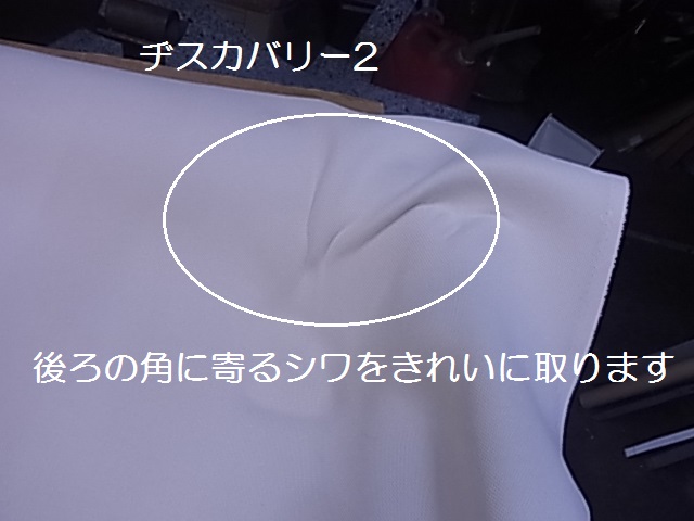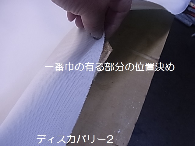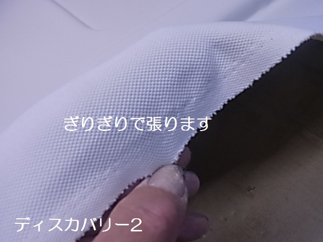 中心から片側方向を張り、布地が足りているかを確認しながら作業を進めます。