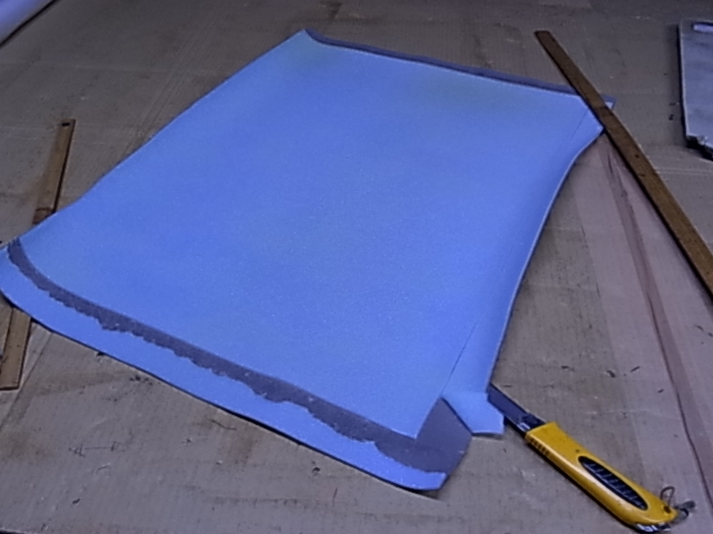 サンシェードの張替 余分なウレタン部分を削除して張り替えます