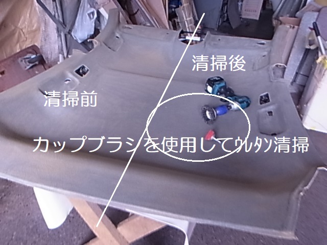 ワイヤーブラシ、取ってなど細かな凹凸部分はナイロンのカップブラシなどを使用して完璧に削り落とします。