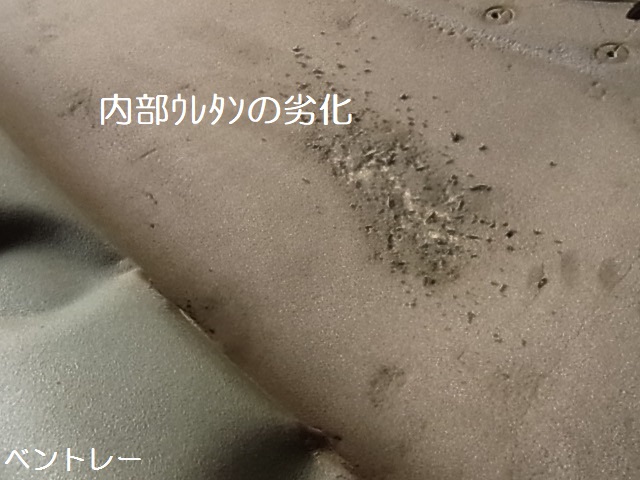 純正の本革表皮と内部ウレタンの剥離の為垂れてきている