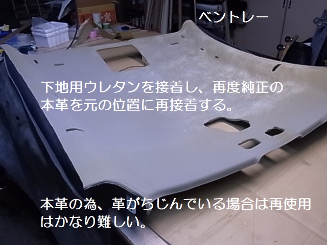 天井の内部ウレタンが劣化して、重量のある本革表皮がたるんで来ます