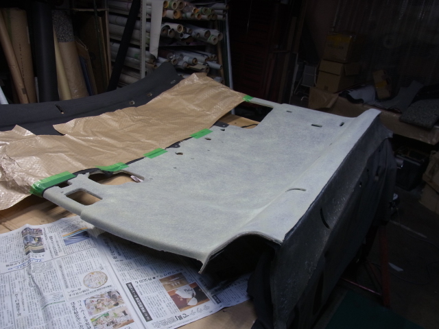 中硬質の車用難燃ウレタン5ミリを下地に張ります。