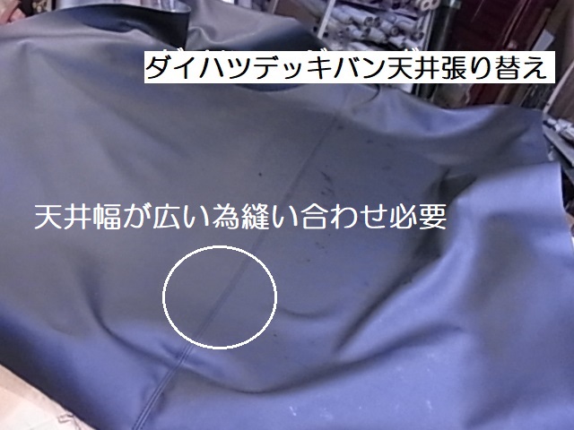 幅が広い天井の為 合皮レザーで2枚を縫製して張替致しました。