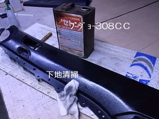 合皮と内張にボンドを塗り一度乾燥させてから再度再スプレーしながら張り込んで行きます