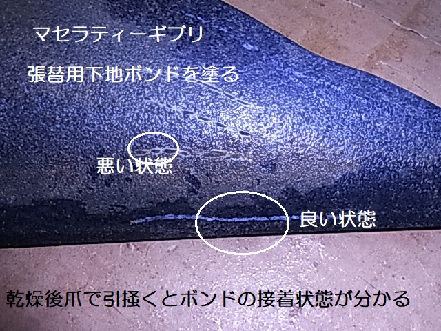 清掃後ボンドを塗って一度完成させ、爪で引掻くと下地が駄目な部分はボンドが剥がれます。