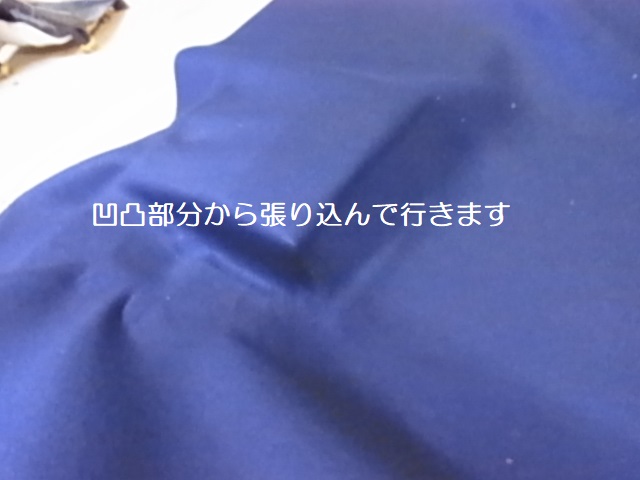 凹凸部に軽くボンドを塗りシワにならないように張って行きます