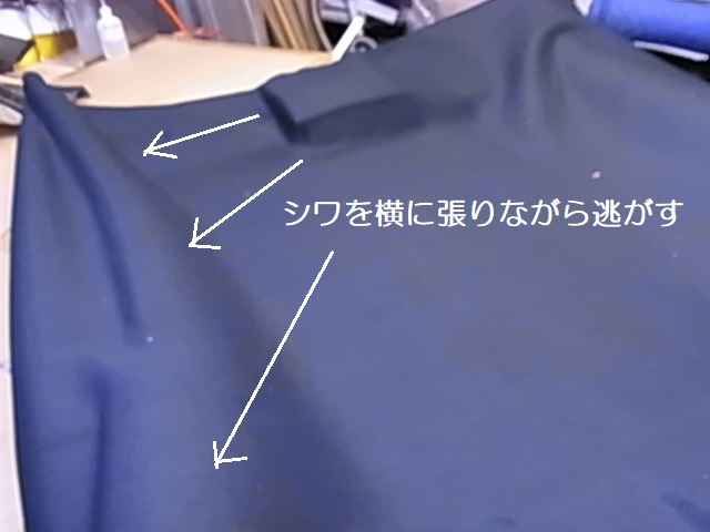 凹凸部を張った時に出来たシワはサイド方向に散らして接着します