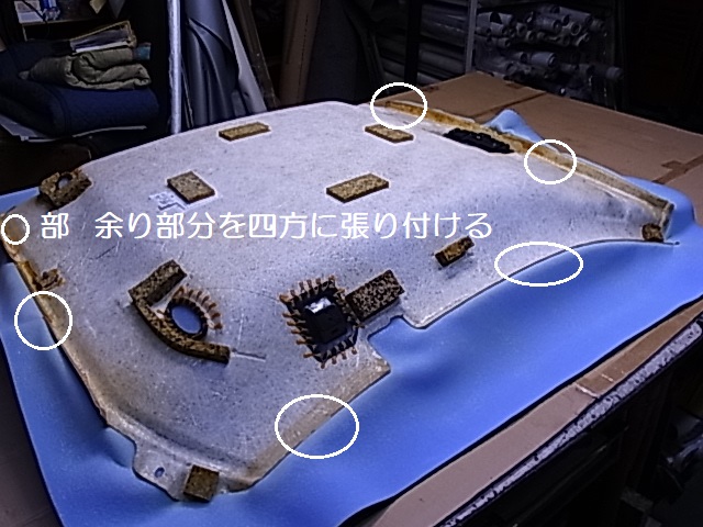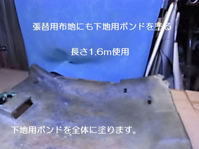 張替に使用する布地と、天井本体に一度下塗りのボンドを塗り乾かす。