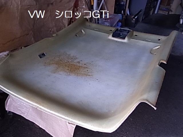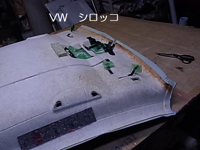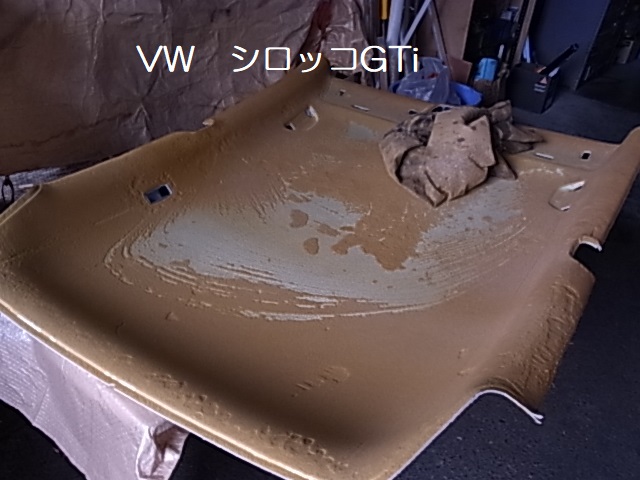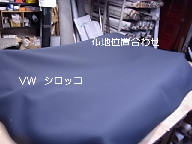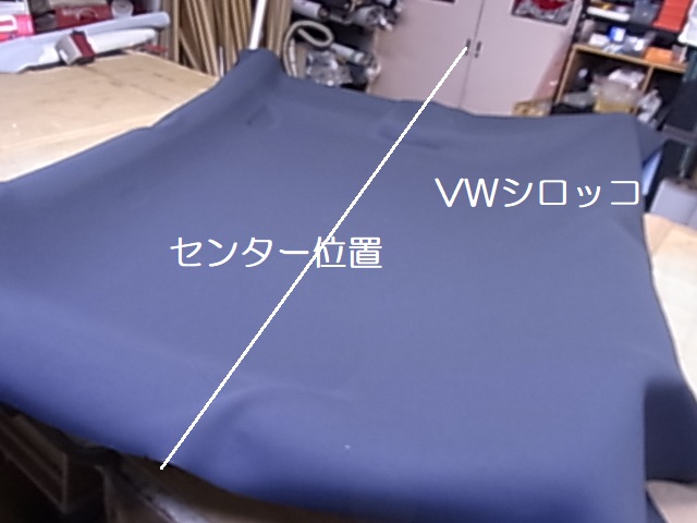 布地の位置決め、この状態で布地と天井が接着したら失敗の始まりです