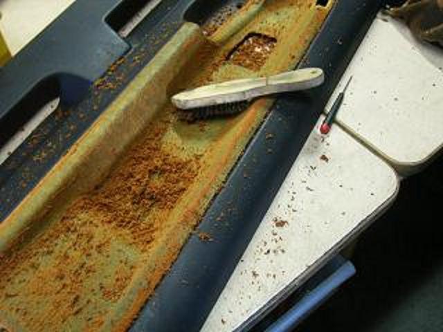 溝の部分のウレタンも、きれいに落とします、時間がかかりますが、これがかなり重要な作業です。