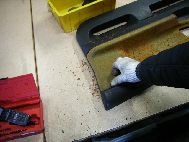 取り除く方法としては、ワイヤーブラシ、荒めのサンドペーパーなどを使用すると、早く取り除く事が出来ます。