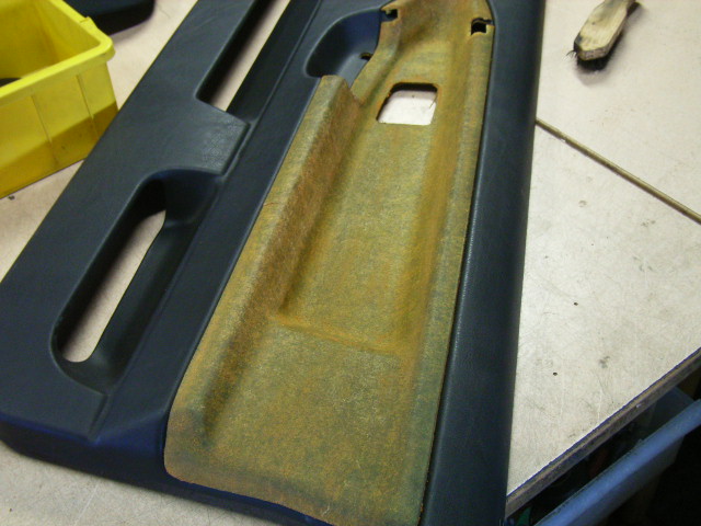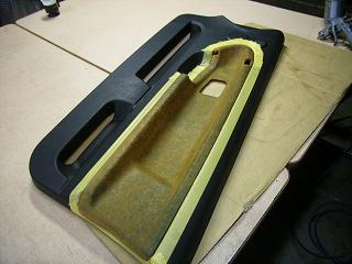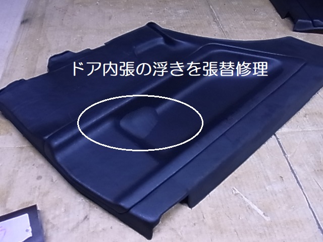 (このドアは2ドアの後部側です、後部側は簡単に分解できますので分解して張替えを行います)