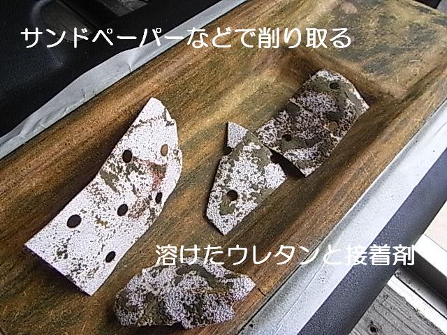 ウレタンが溶けだしボードに染み込んでいる場合はかなり重症です、かなり大変な作業ですが確実にベタベタのボンドを取らないと必ず剥がれます