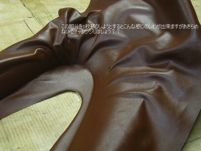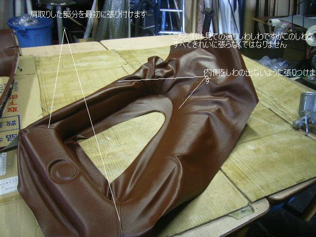 しわを取りながらの張り付けはレザーの伸びの性質を良く理解して取り掛かればこのように仕上げることが出来ます。