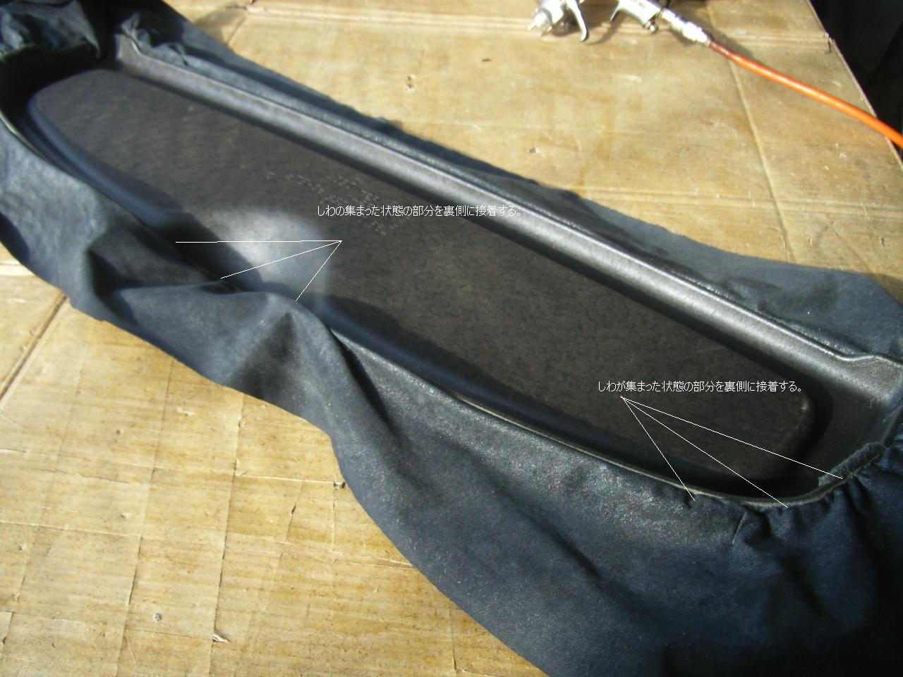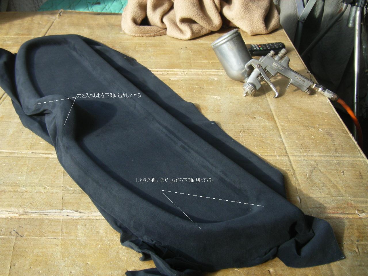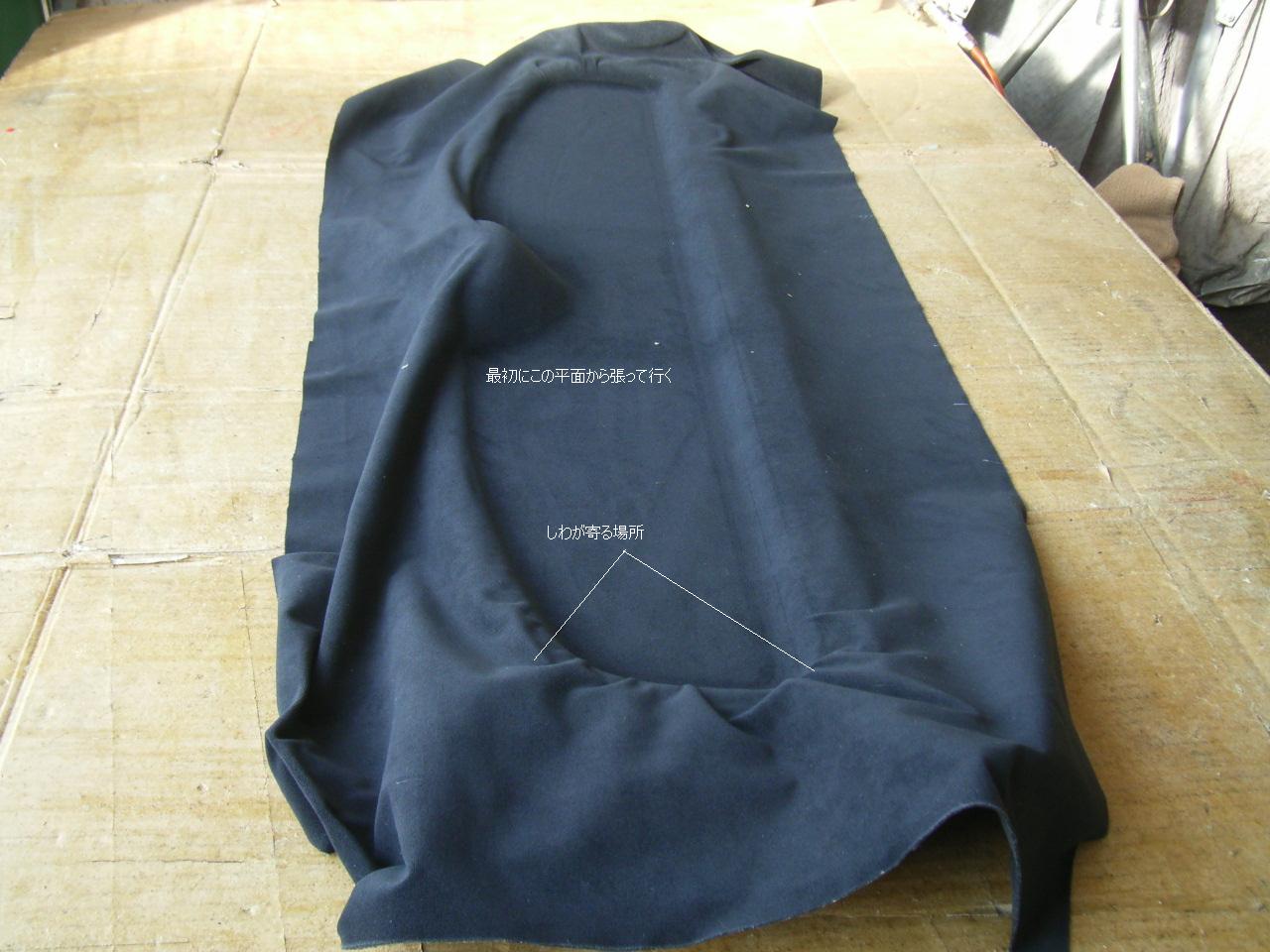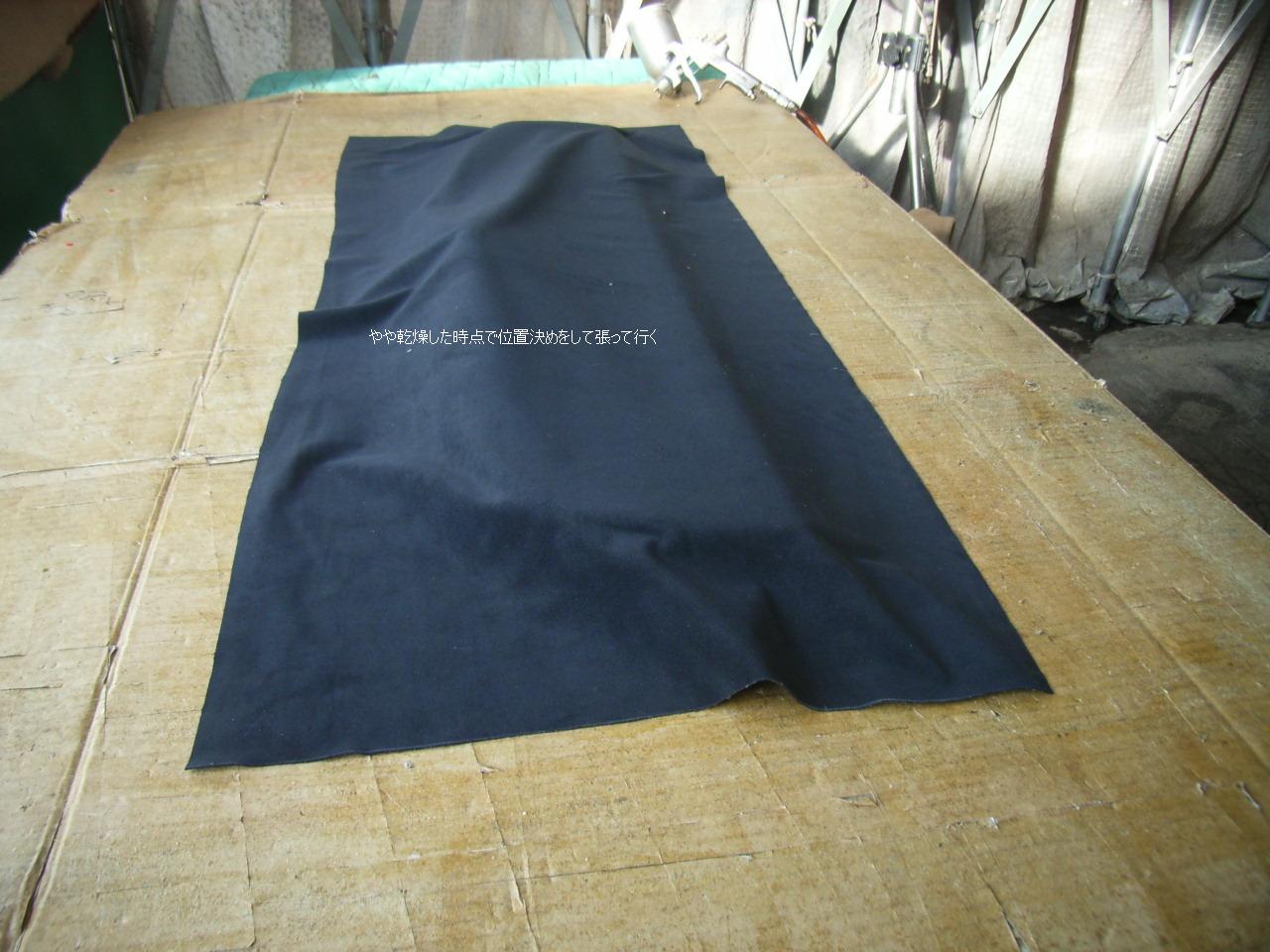 このタイプの場合しわが、出来た部分に再スプレーをして、力を入れ、下側に、しわを散らしながら張って行くときれいに無くなるのが判ります。