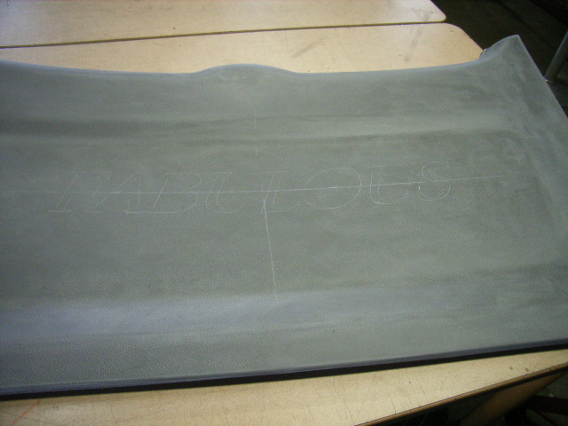 パネルはレザーを完全接着させる為に完璧な足付け作業を行い張り付ける文字の位置のアウトラインを書き込む。
