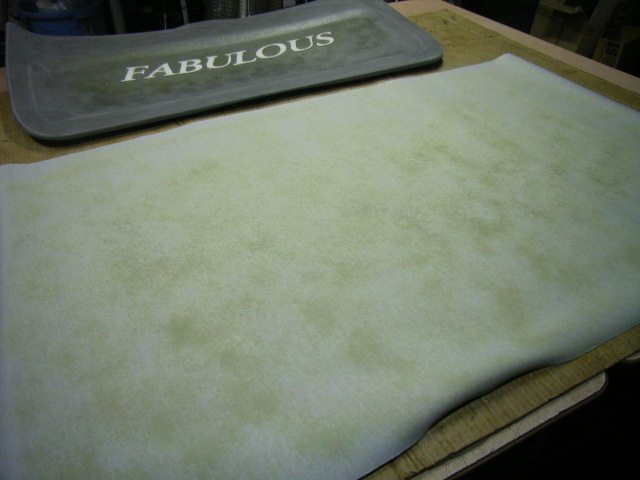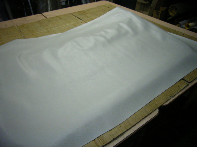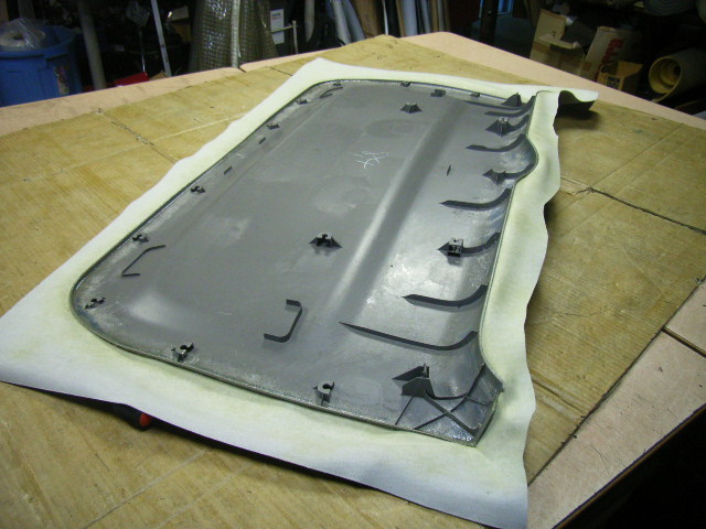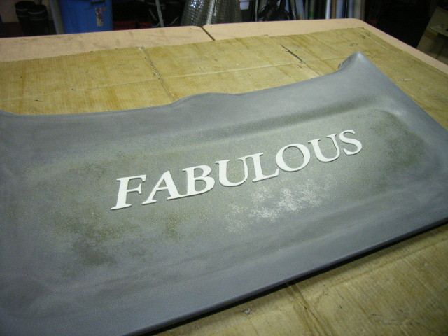 ミニバンのリアゲート内張りを張替時に、ファブレスの文字を浮き文字加工で入れる。