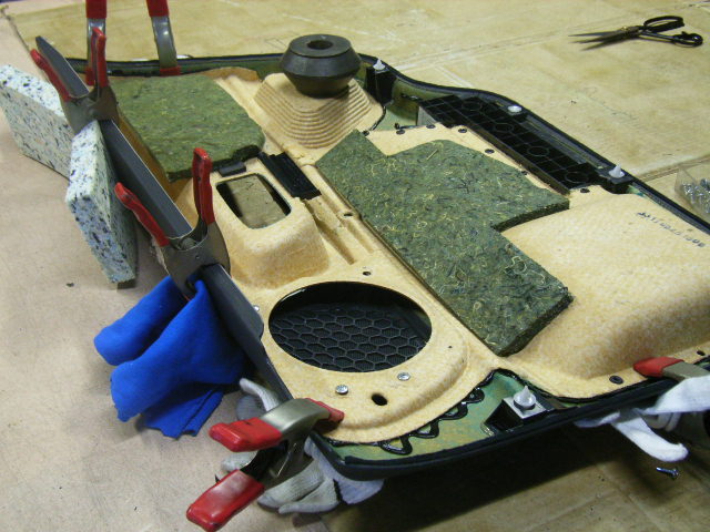純正は表面のレザーの下にウレタンが入っておりますが、同じようにウレタンを入れるのは無理ですから、ウレタンの厚み分を 10ミリのバックアップ材を半切りにした物を4方端に接着すると 画像のように隙間が無くなります。