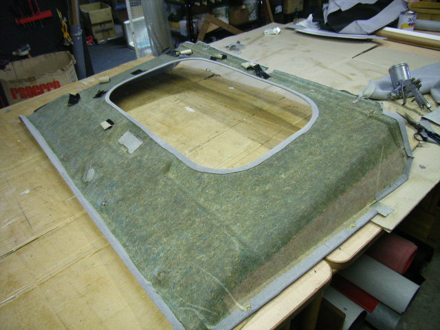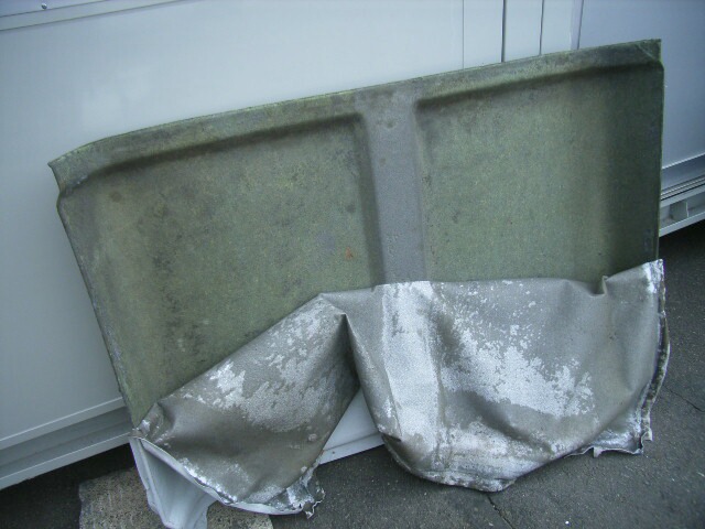 純正の天井材は薄いビニールレザーにウレタンが張られていますがビニールがちじみ、ウレタンと分離して剥がれているのが