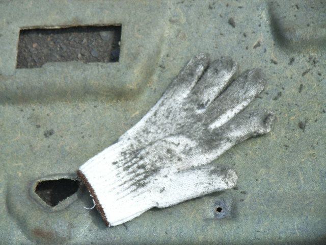 レザーは簡単に剥がれますが残ったウレタンをきれいに剥がさないと張り替えた時にそのまま凹凸が出てしまうのできれいに取り除く事から始めます、最後に残ったベタベタなウレタンは軍手で擦るときれいに取り除く事が出来ます。