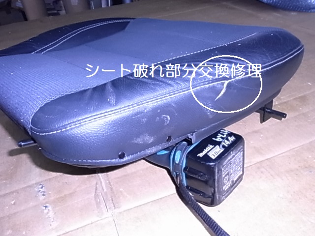 運転席座面横マチの破れ修理