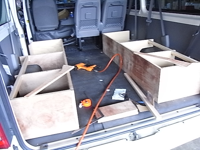 本来ならば一度ベニアで床を仕上るのが望ましいのですが現状復帰も有りえる為今回は床板は張らず純正のマットのままベットキットを作成します、定員片側3名ですのでシートの長さは最大で1590ミリそれ以上になると定員オーバーで車検が通らない