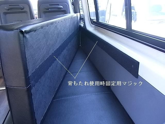 純正の椅子定員6人分を取り外し横向き座席定員6人分の座席兼用ベットキット