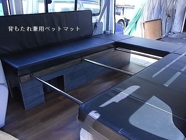 ベット兼用シートの表皮は今回は黒のレザーを使用しました。