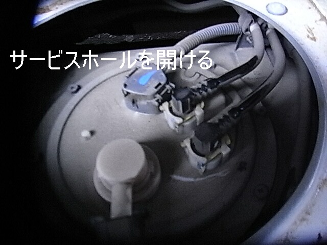 燃料タンク上部のサービスホールを開け、燃料ポンプユニット