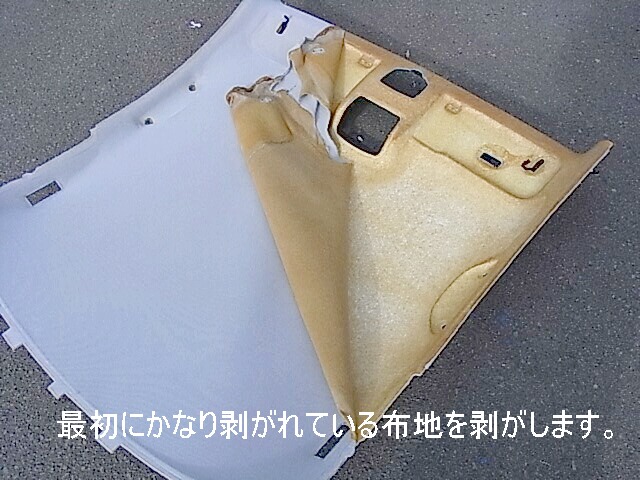 天井を張り替える為には天井を取り外し車外に出して張替えを