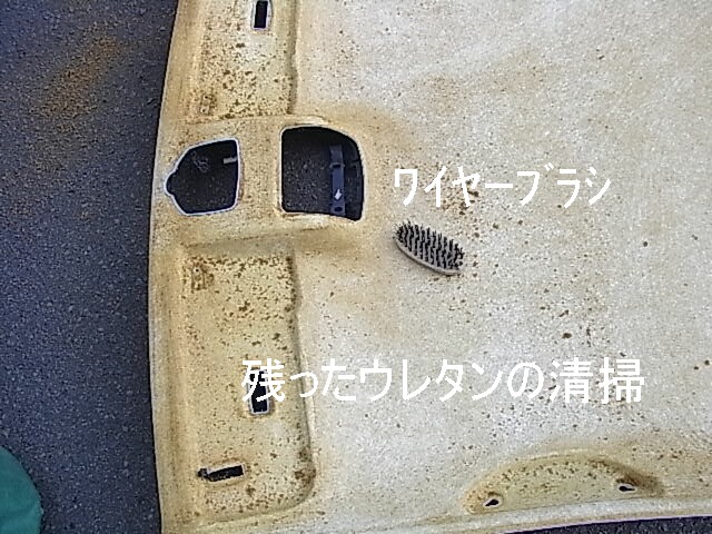 ワイヤーブラシで力を入れずになでるようにウレタンを取り除きます。