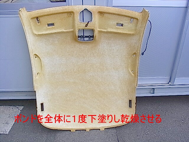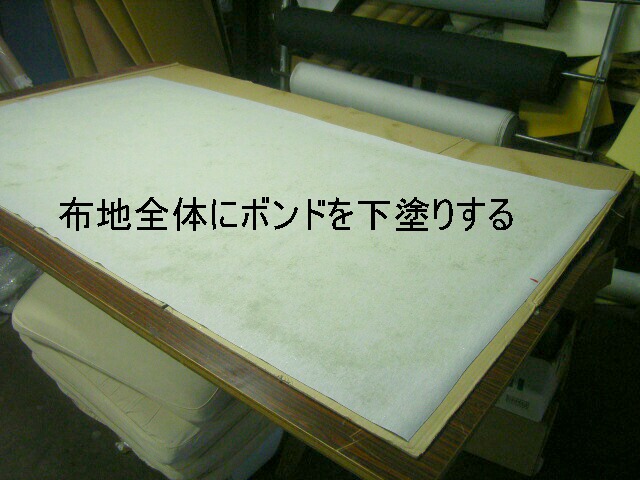 張り替える布地にも1度全体にボンドを塗ります、これを乾燥させれば