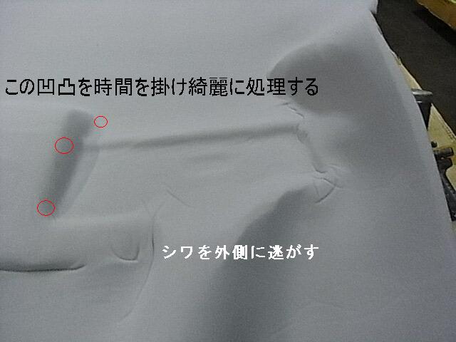 時間を掛けゆっくりシワを逃がしながら張って行きます