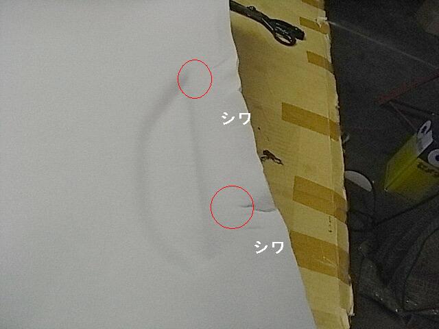 簡単に剥がれる様であれば再度接着が必要です、剥がれなければ接着はオッケーです、赤丸付近にシワを集めます