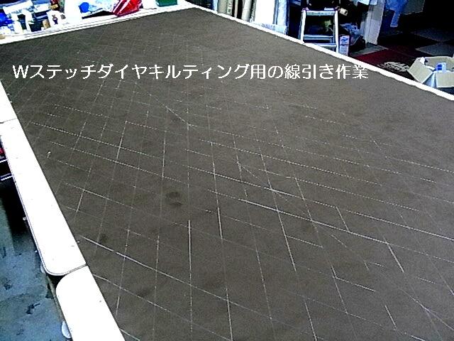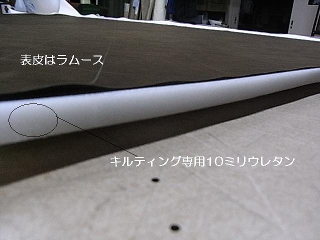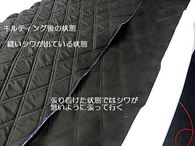 下地ウレタンと表面のラムースは接着はしていない為キルト中に ウレタンの伸びが有る為シワがありますが、張る時にこのシワを伸ばして張るときれいに仕上がります。