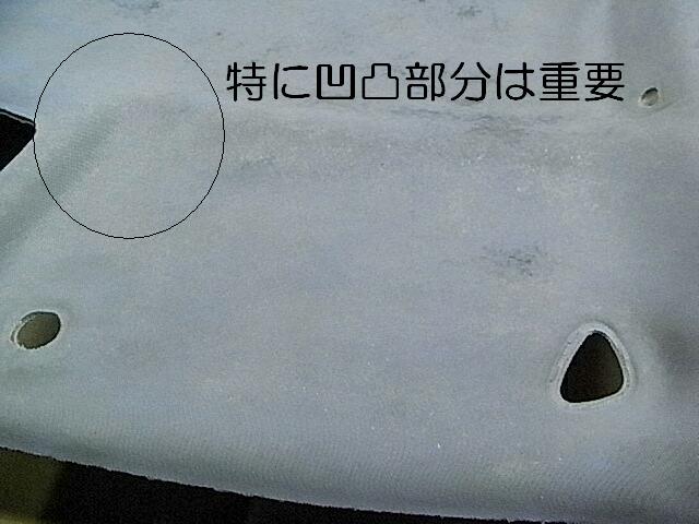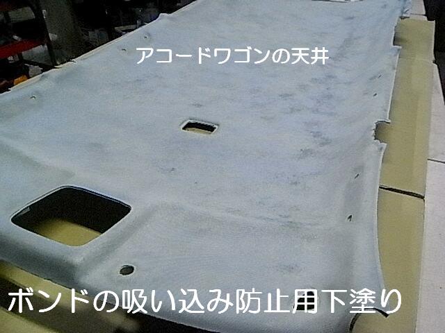 このタイプの純正天井はボンドをかなり吸い込みますので初めに吸い込み防止を兼ね全体にボンドを塗ります。