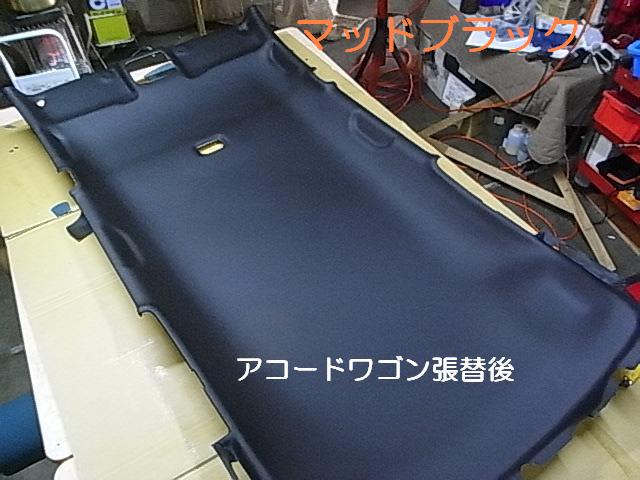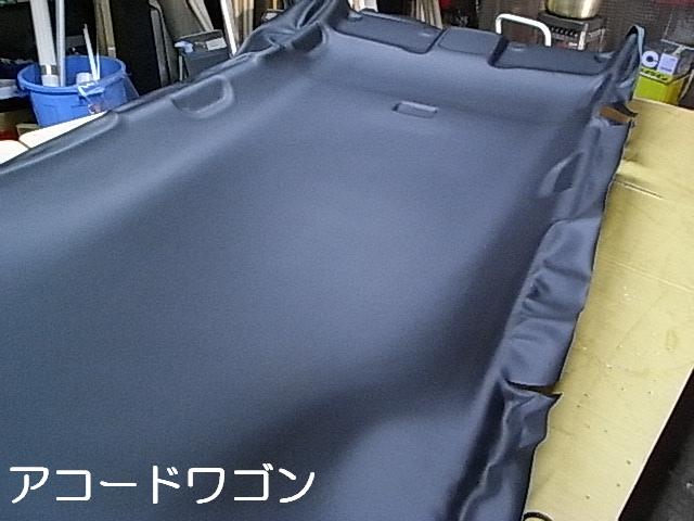 ■アコードワゴンの天井をマッドな艶消しレザーを使用して張替ます