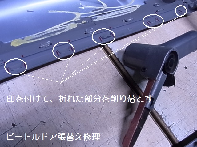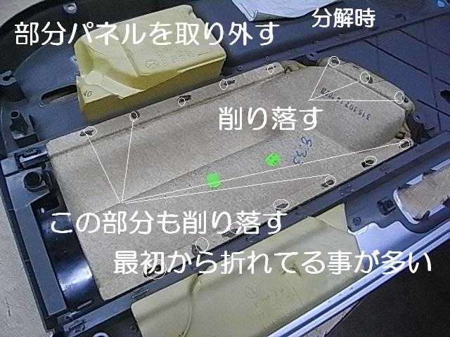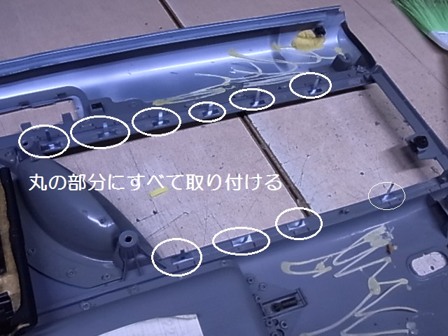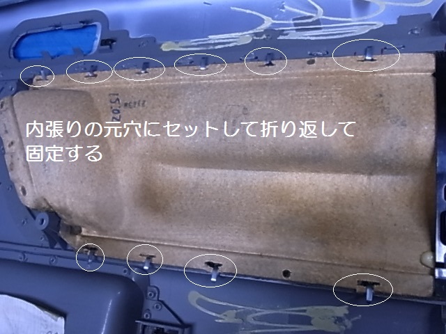 削り取った部分は後でタッピングで内張りを固定しなくてはならない為、削り過ぎに注意して下さい。