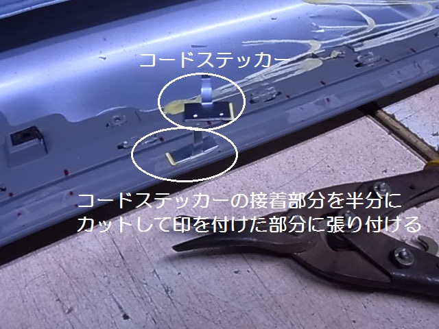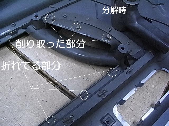 上下固定用リブをペンチなどを使い表側に力を入れ曲げ直します、かなり力を入れて行いますが多少折れてもその方がきれいに装着出来ます。